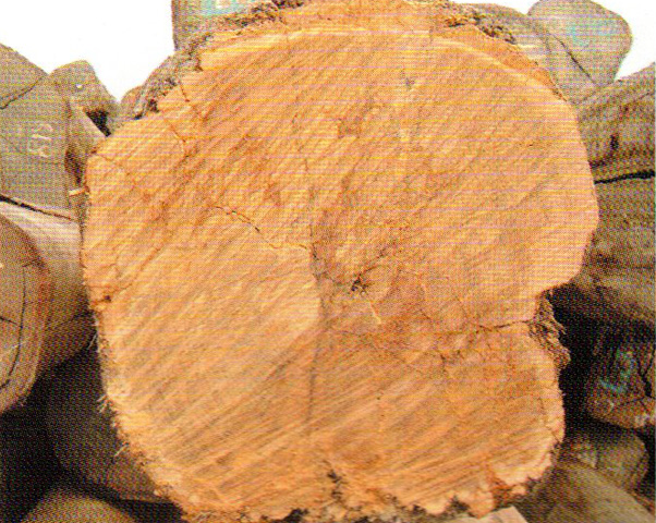 心邊材區(qū)別明顯。心材淺黃褐色,久則轉為巧克力褐色。邊材窄,金黃色。生長輪略可見。