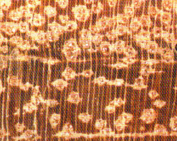散孔材。管孔肉眼下可見,少,略大;主為單管孔,少數徑列單管孔(2~4個);侵填體豐富。軸向薄壁組織肉眼下可見,短翼狀、聚翼狀、環(huán)管束狀及不規(guī)則弦向帶狀。木射線放大鏡下明顯,密度中,窄。