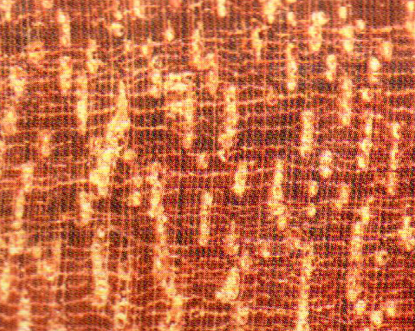 散孔材。管禮放大鏡下明顯,略多,略小;單管孔及經(jīng)列復(fù)管孔(2~5個(gè));經(jīng)向排列明顯;充滿黃白色的沉積物。軸向薄壁組織放大鏡下明顯,弦向線狀,細(xì)而密集,分布均勻,常與木射線構(gòu)成網(wǎng)狀。木射線放大鏡下明顯。密而窄。